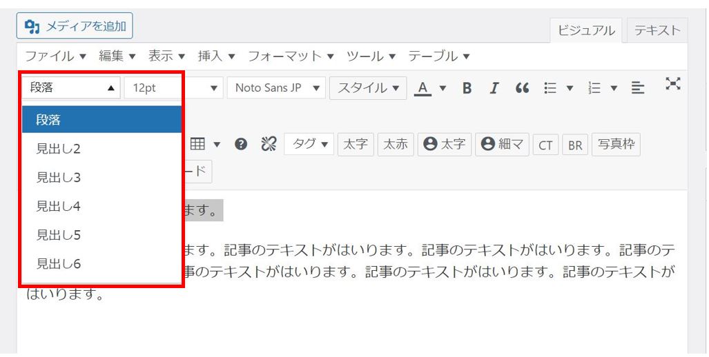 ボックス内から該当の見出し(見出し2、見出し3)を選択