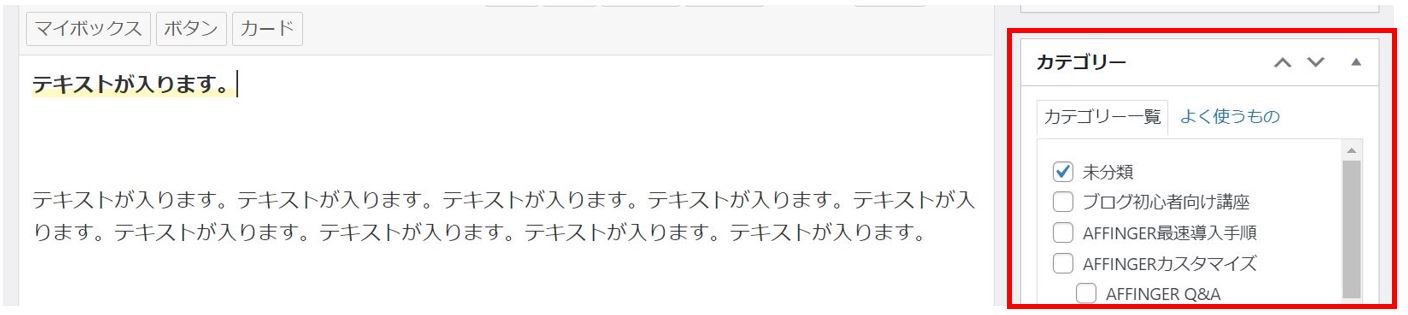AFFINGERでよく使用されるエディターはClassicEditorです。