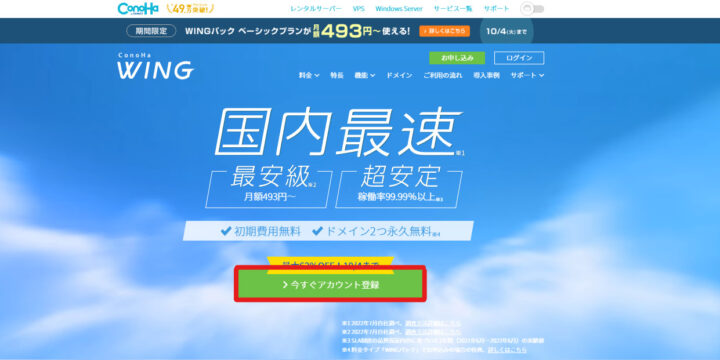 アクセスすると『ConoHa WING』のTOPページが開きますので、
