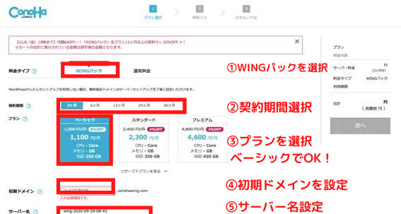 以下、このConoHa WING(コノハウィング)サーバーの設定方法から解説していきます!
