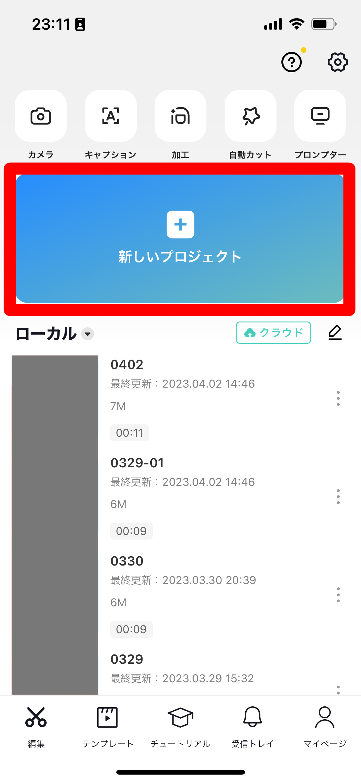 アプリを開いたら、『新しいプロジェクト』を押します。
