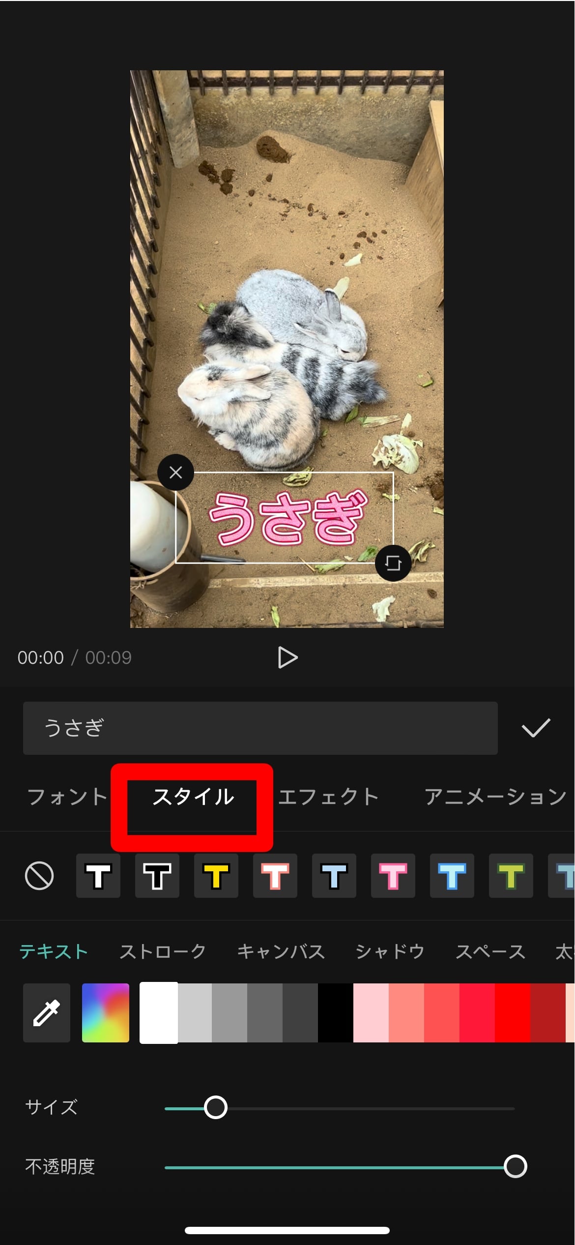 「スタイル」から文字の装飾の変更ができます。