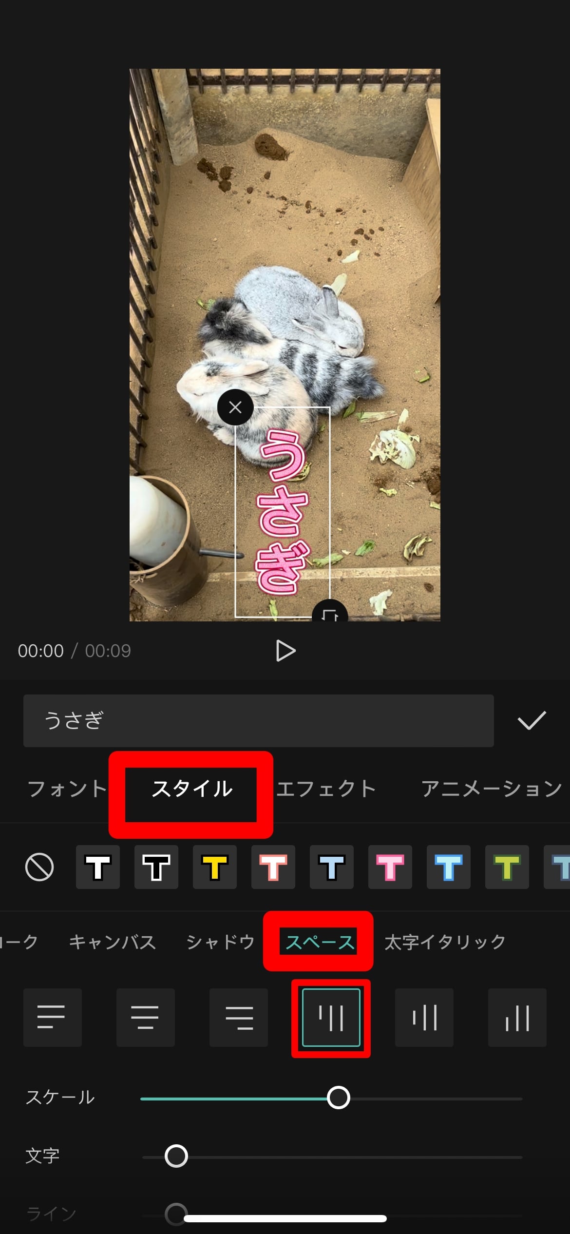 ・スペース・・・文字の間隔を空ける