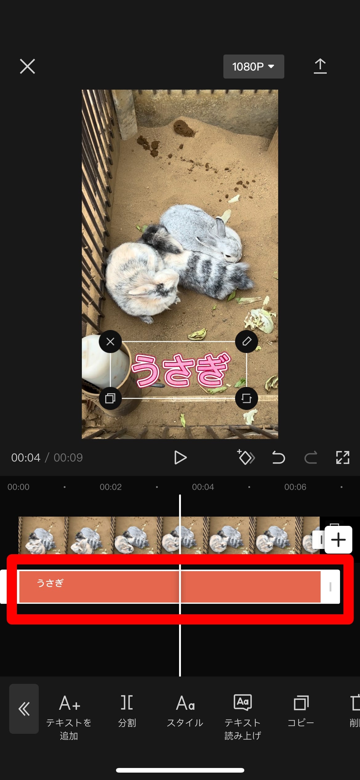 入力欄にテキストを入力すると、動画上にテキストが表示されます。
